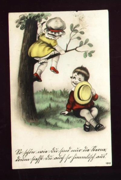 старинная довоенная немецкая открытка - подписана - дети играют - 1930- годы -