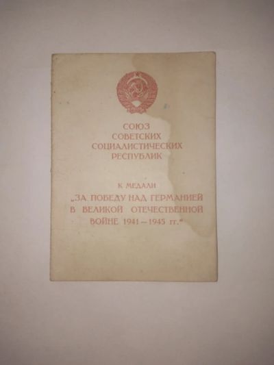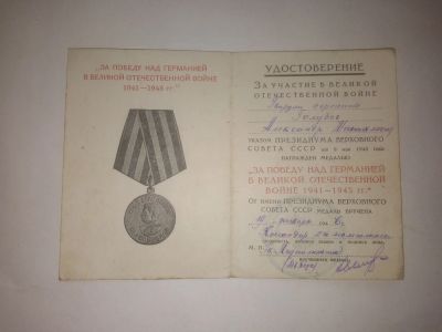 Удостоверение к медали за победу над Германией на Гвардии сержанта Копия