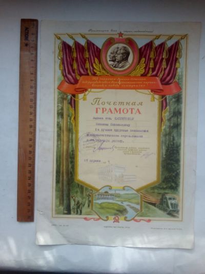 Грамота за лучшие производственные показатели в Социалистическом Соревновании 1955 г.Редкая!!!