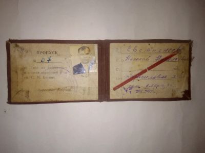 Старинный пропуск времён СССР на территорию ф-ки им. С.М.Кирова. 60-ые гг.