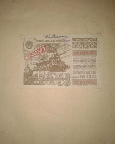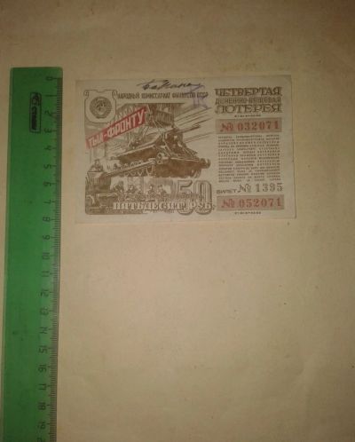 50 рублей 1944 года 4-я Денежно-вещевая Лотерея"Тыл-Фронту"Состояние хорошее.Раритет!!!