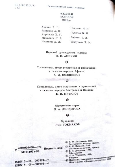 Путилов Борис, Поздняков Константин (составители) - Сказки народов Африки, Австралии и Океании / Серия: Сказки народов мира в десяти томах. Том 6 / Издательство: Детская литература (1990) / 5-08-000899-7, 5-08-001996-4 / Художник Лев Токмаков.