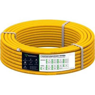 Труба гофрированная Vetona 25 A, нержавеющая сталь, отожженная, в оболочке, 30 м, желтая (95473)