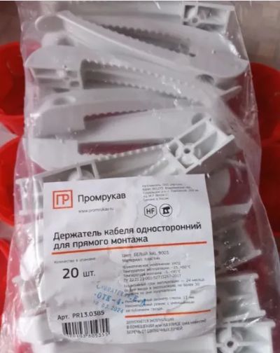 Держатель круглого кабеля односторонний белый, 20 шт.