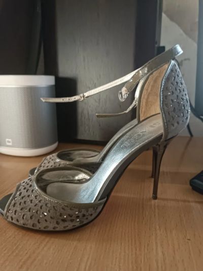Босоножки женские Dianmeini Золото Стразы ремешки.р.37 .Длина стельки 24.5-25см.Оригинальный каблук